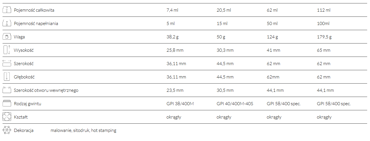 pojemność 5ml, 15ml, 50ml, 100ml
